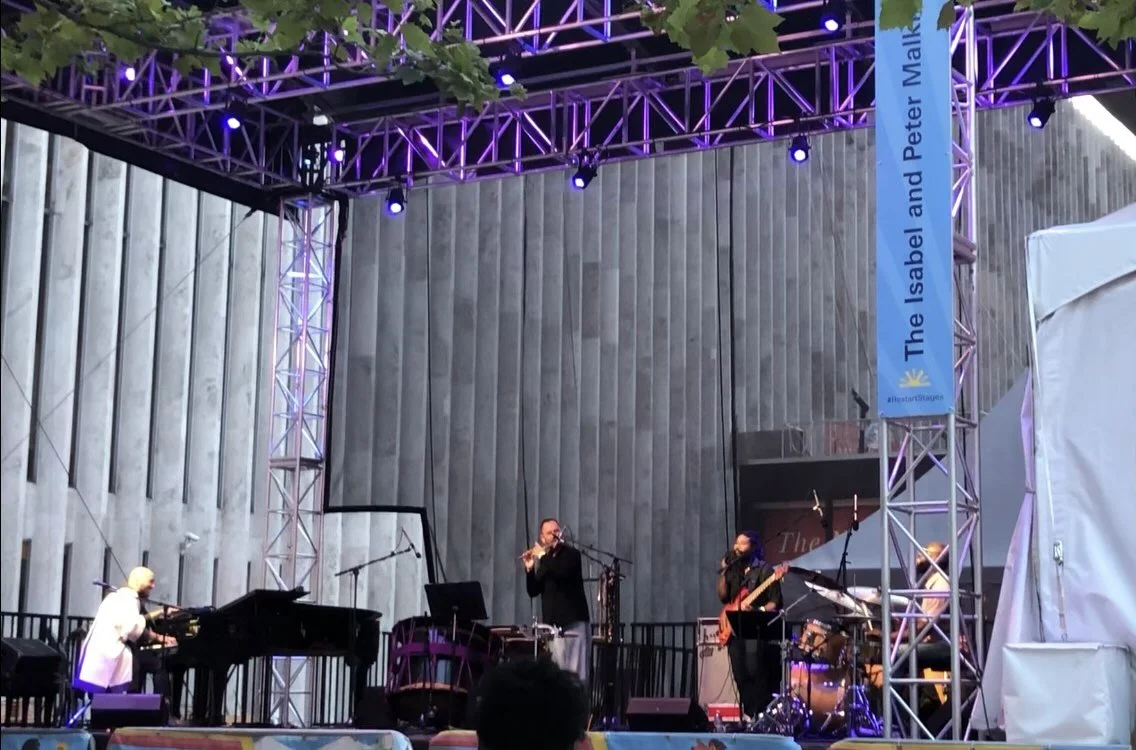 By July, I was working more and more in person with other musicians. At a recording/birthday party for my great friend, tabla and jazz drummer Sameer Gupta featuring many incredible musicians, including Martha Redbone and Charlie Burnham. TWO of my trios happened to be there: Bloodlines with cellist Marika Hughes and bassoonist Sara Schoenbeck and BORGUSAKAGU with Brazilian percussionist Rogerio Boccato and Sameer. I was a guest with Elena Moon Park at Lincoln Center, and then, by chance, just about a week later, I played on the same stage with Mark de Clive-Lowe and bassist Parker McCalister and drummer Anwar Marshall.